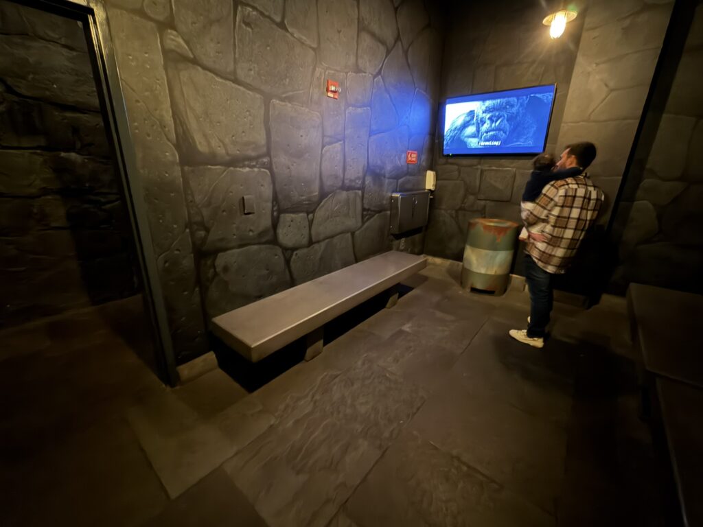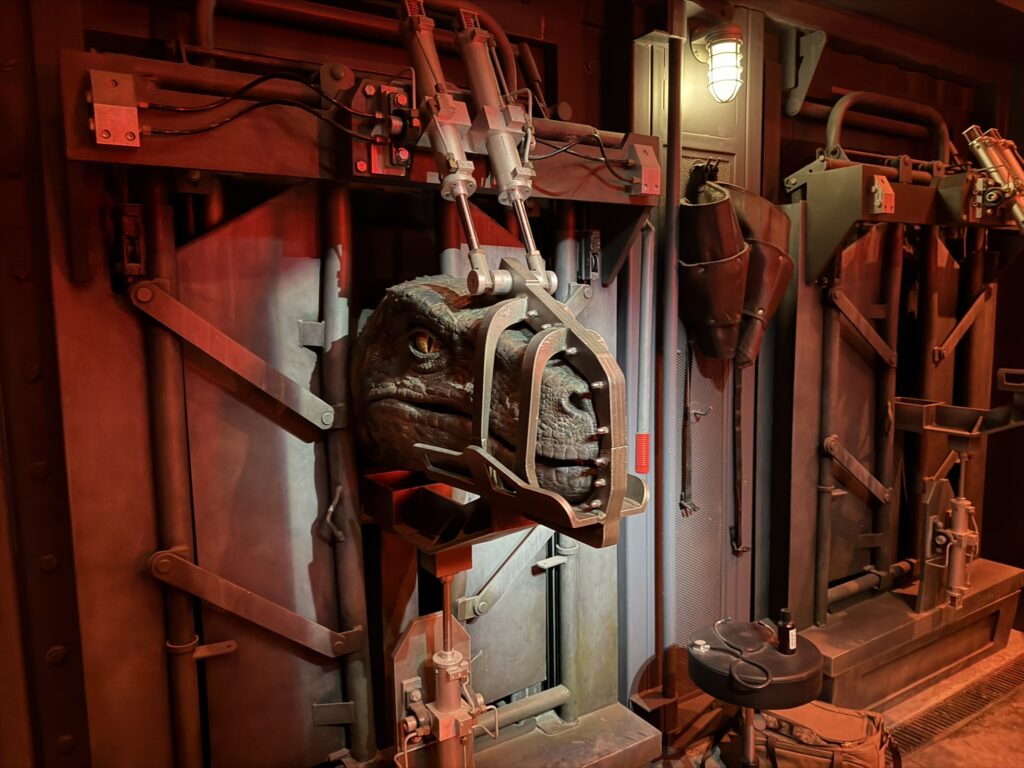 We stand in line, enjoying the incredible theming of the ride. Our son especially loves the raptor heads sticking out.