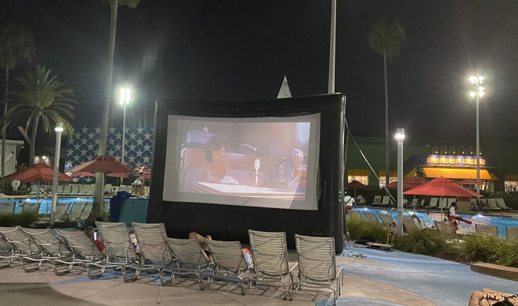 And if you don’t want to watch the movie being played at Art of Animation, you can also head over to Pop Century Resort to see what they are watching. Pop Century is just a short walk away across the Hourglass Lake bridge.