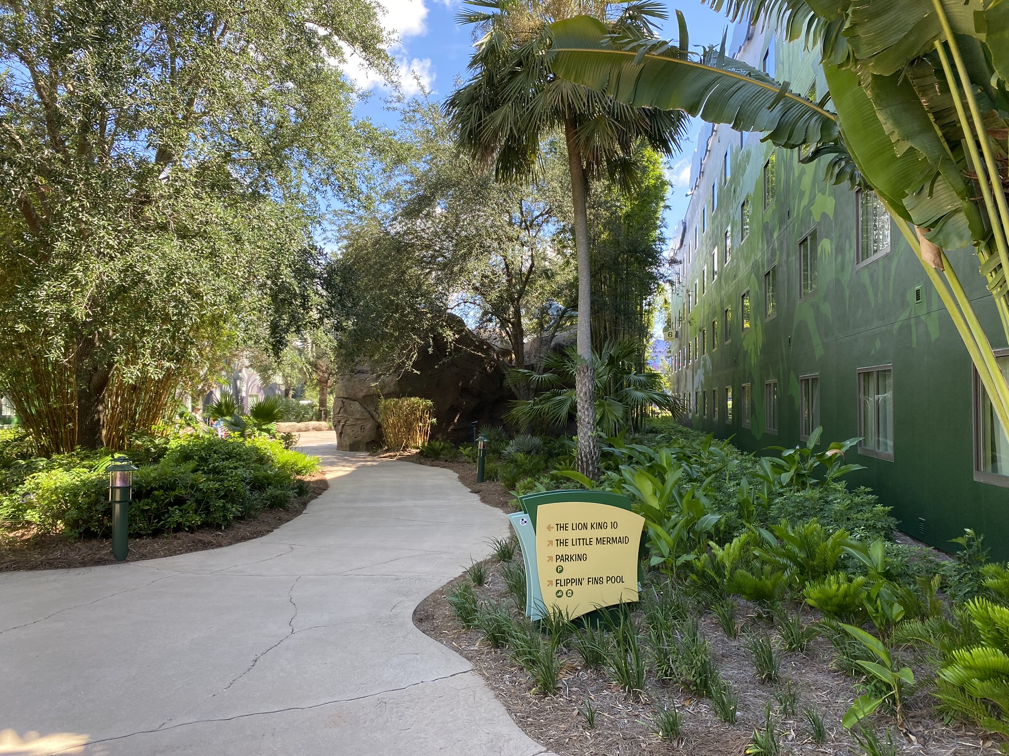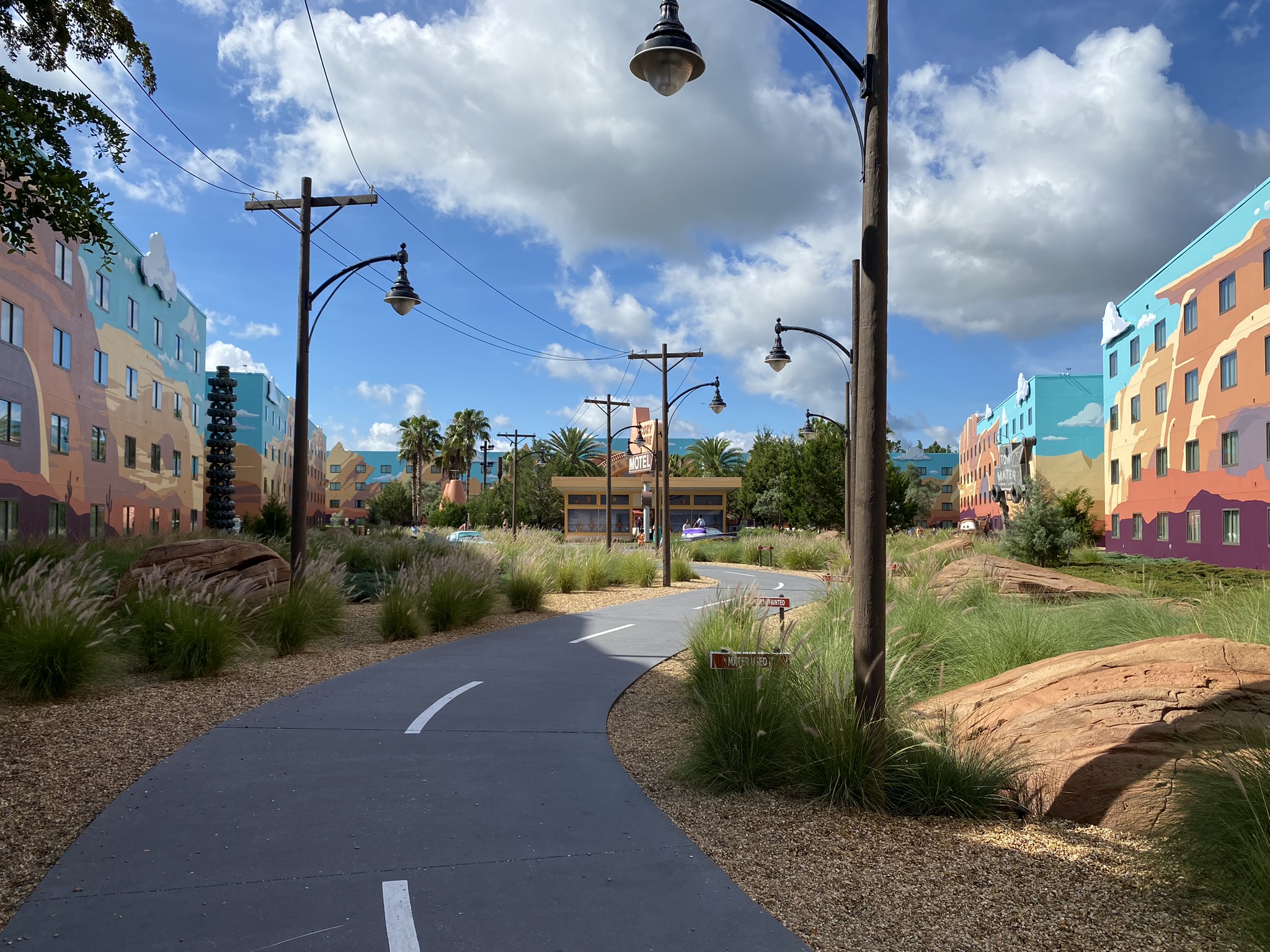 But you could make this much longer by exploring all the interconnected trails at Art of Animation, then crossing the bridge over Hourglass Lake and doing the same at Pop Century Resort.