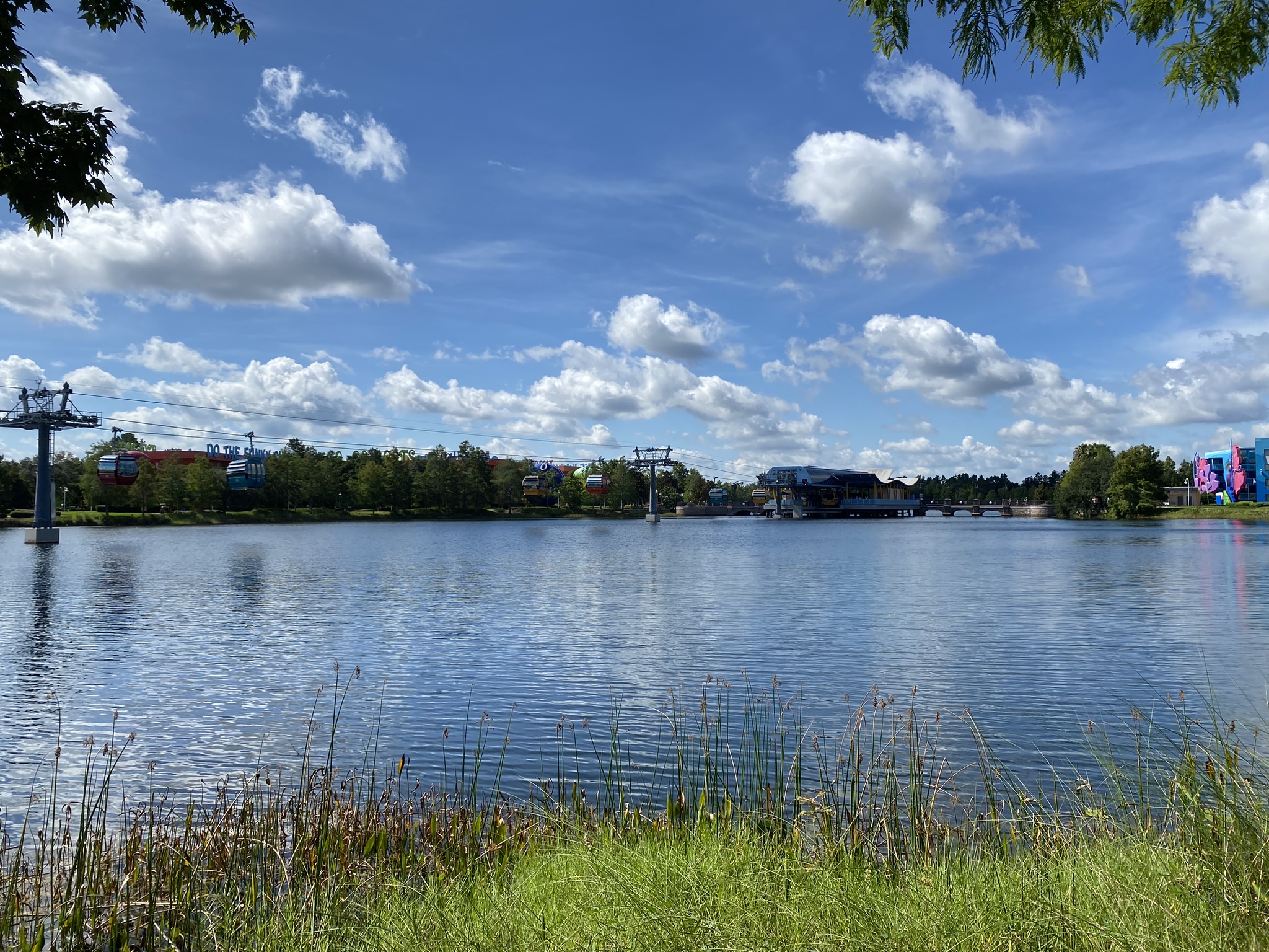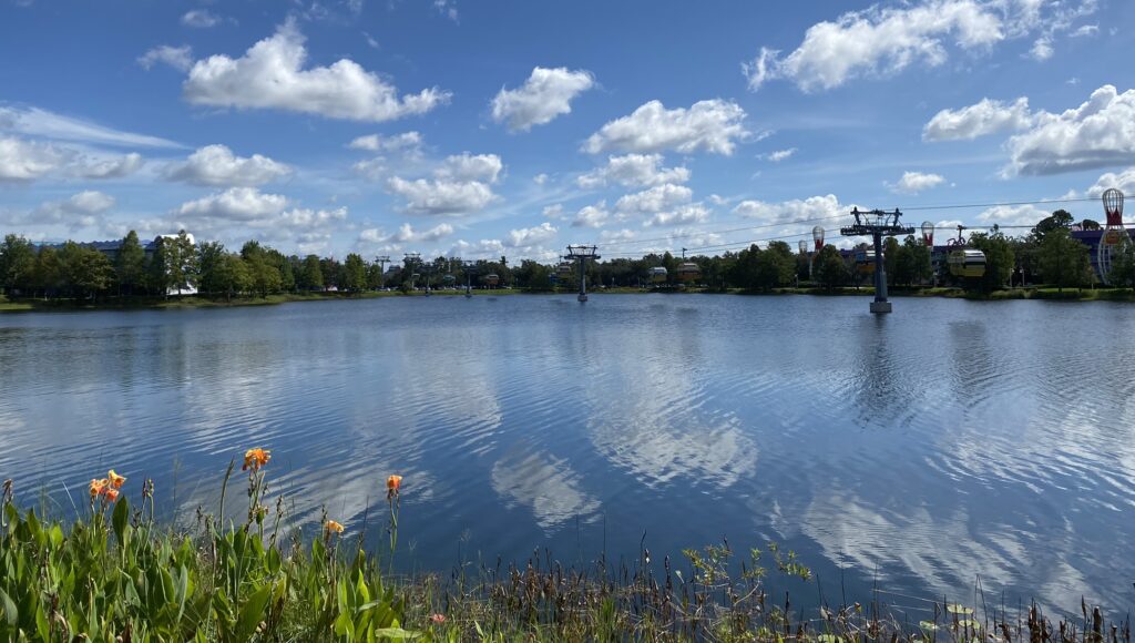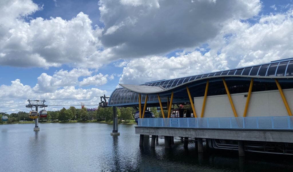 Once you have boarded your cabin, prepare for a wonderful view as you rise over Hourglass Lake and ride to the connecting station at the Caribbean Beach Resort. Once you arrive at the Skyliner connecting station, you will get off and take a short walk around the corner to board another cabin that takes you to your final destination of either Hollywood Studios or Epcot.