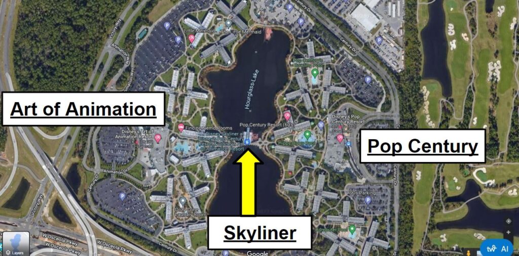 No matter where you stay at Art of Animation, you have less than a 5-minute walk to the boarding area! Check out the map below to see exactly where the Disney Skyliner is located in relation to the Art of Animation: