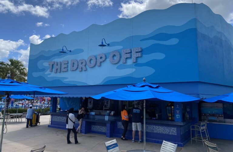 Outside, there is a pool bar called The Drop Off. You can find it next to the Big Blue Pool.