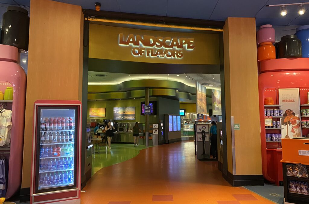 The main place to eat at Art of Animation is called Landscape of Flavors. It’s a large dining area and food court located right inside Animation Hall.