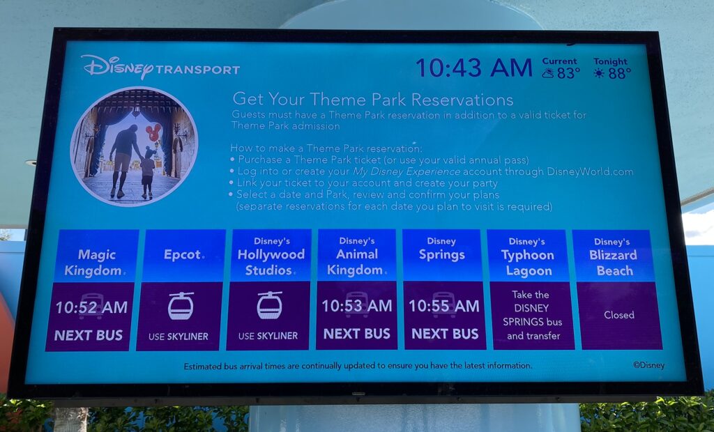 As you can imagine, since this does not cost anything extra, it’s the most popular way to travel. However, at certain times of the day, such as the park opening, you might experience a bit of a line to board the bus. So, make sure to give yourself plenty of time if you need to arrive somewhere for a reservation or show.
