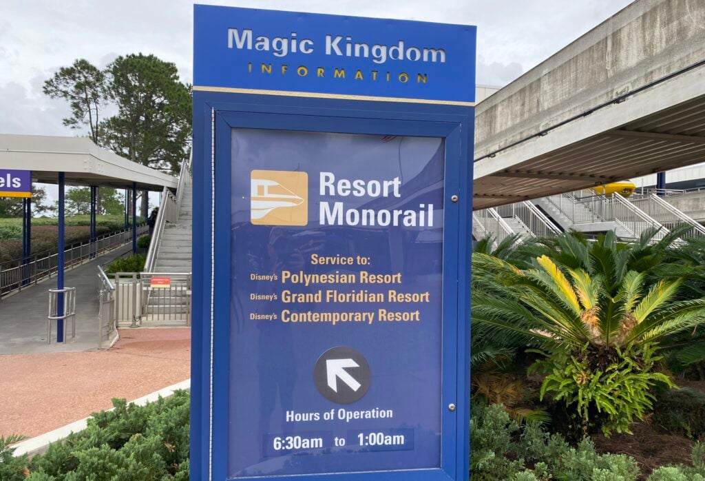 When you leave Magic Kingdom to head back to the Poly, make sure to get on the “Resort Monorail.” The Resort Monorail operates in a circle and stops at the Polynesian, Grand Floridian, Magic Kingdom, and Contemporary Resort.