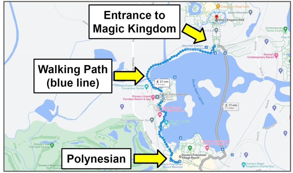 Lastly, it’s also possible to walk to Magic Kingdom from the Polynesian.