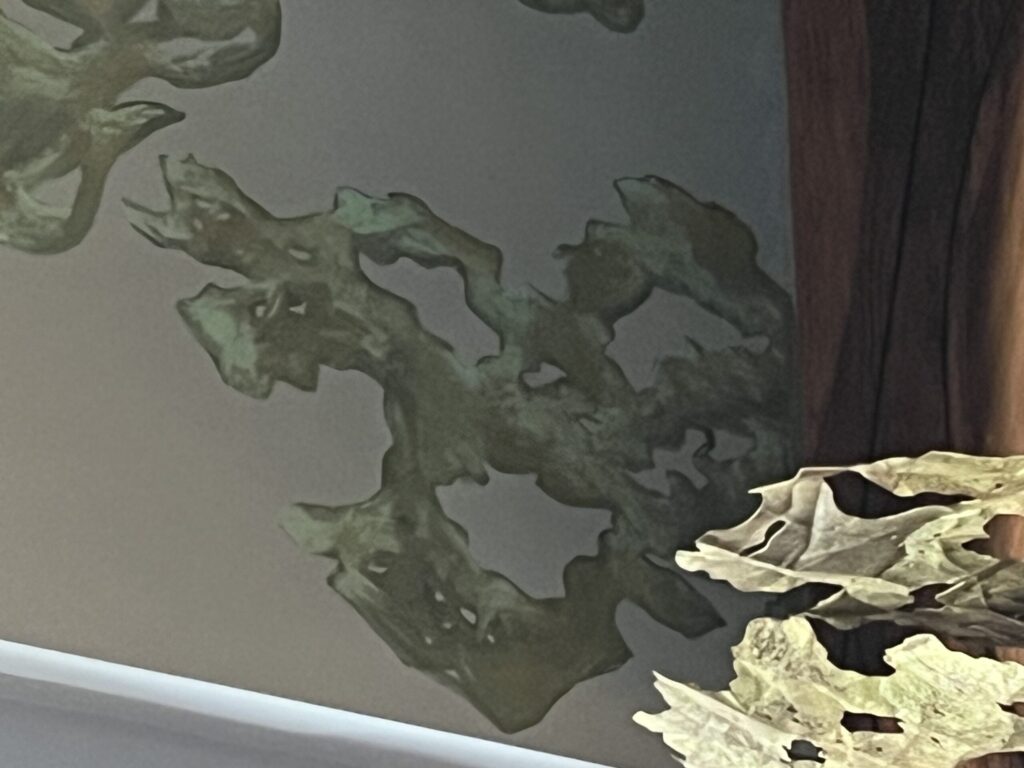 You will find the next couple of hidden Mickeys at the Mara, a restaurant at Animal Kingdom Lodge. Near the food area, look to the wall above the windows and you’ll see a hidden Mickey located in a pile of leaves.