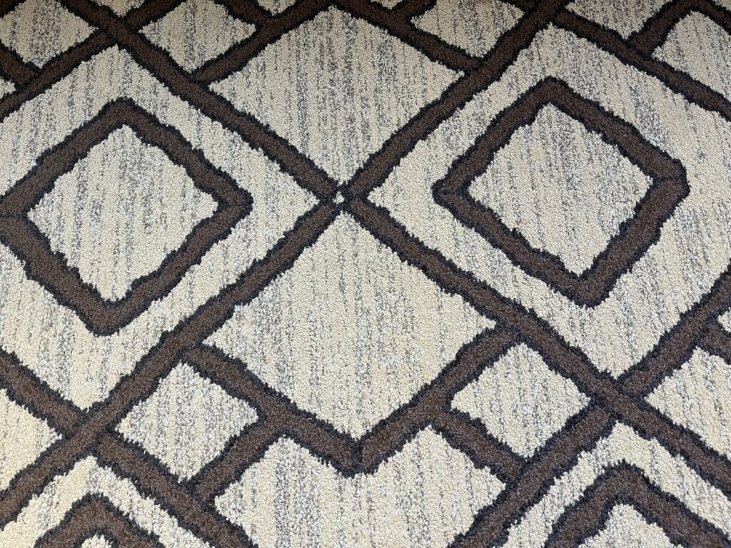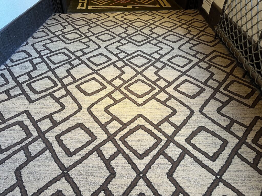 The next hidden Mickey can be found in the hallways throughout the lodge. Search the guest hallway carpets for rectangles that contain hidden Mickeys facing different directions.