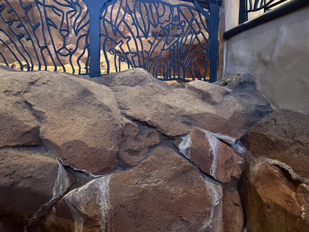 Head over to the staircase that leads to the entrance of Boma – Flavors of Africa. At the first landing, look at the small waterfall on the right side. You’ll see a hidden Mickey in the rockwork of the waterfall if you look closely.