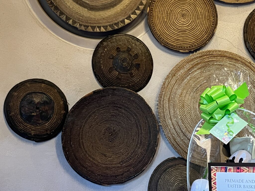 To find the next few hidden Mickeys, head over to Sanaa, a restaurant in Kidani Village. The first of the Mickeys can be found by the restaurant’s check-in desk. Look at the hanging baskets on the wall to the left, and you’ll see a hidden Mickey formed by three of the hanging baskets.