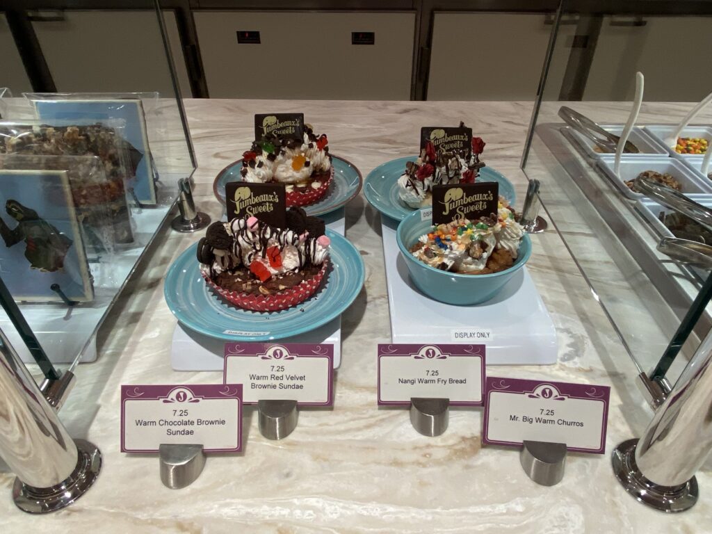 Unlike the soft-serve on the pool deck, Jumbeaux’s Sweets is NOT included in the price of your cruise. Everything must be purchased at an extra cost. It’s similar to other specialty dessert locations you’ll find on ships with Disney Cruise Line.