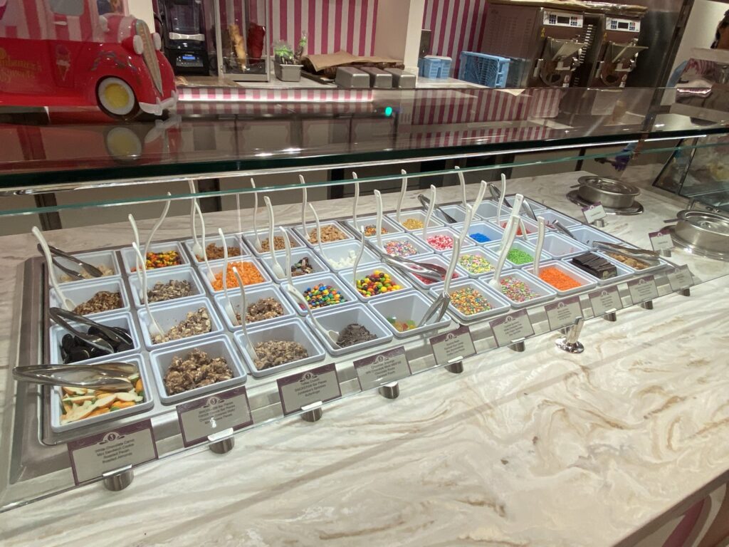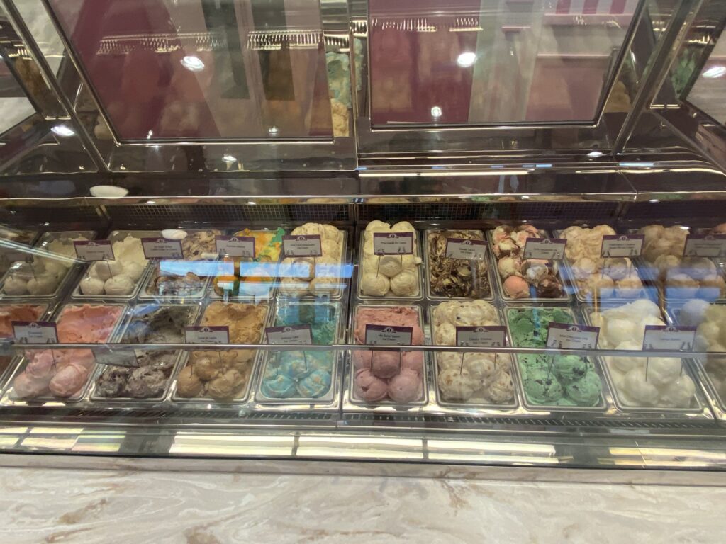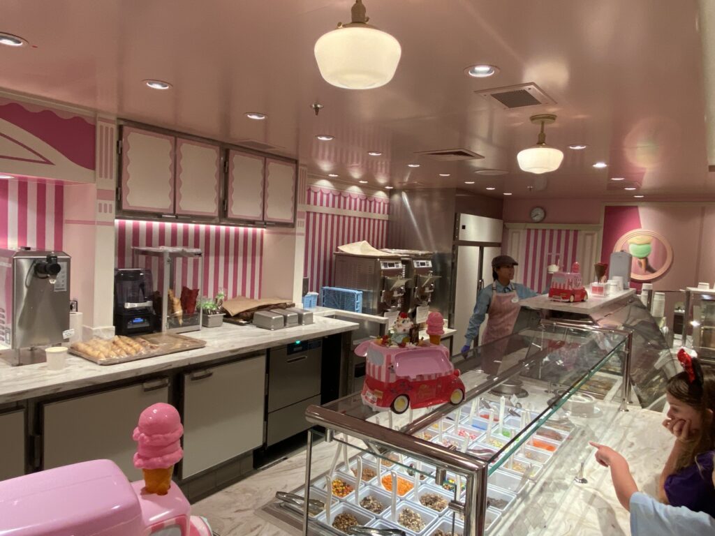 As you can see in my pictures, there is nobody else inside except our family. We ended up going the first time almost as soon as we boarded the Disney Treasure. We couldn’t wait for ice cream and other treats!