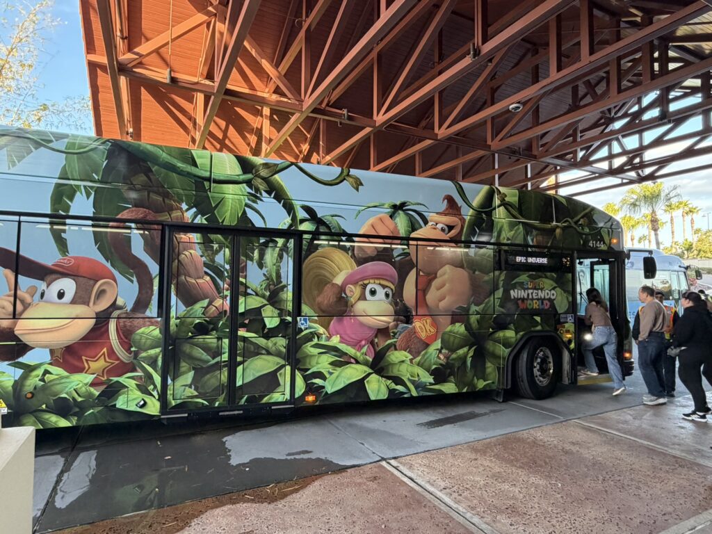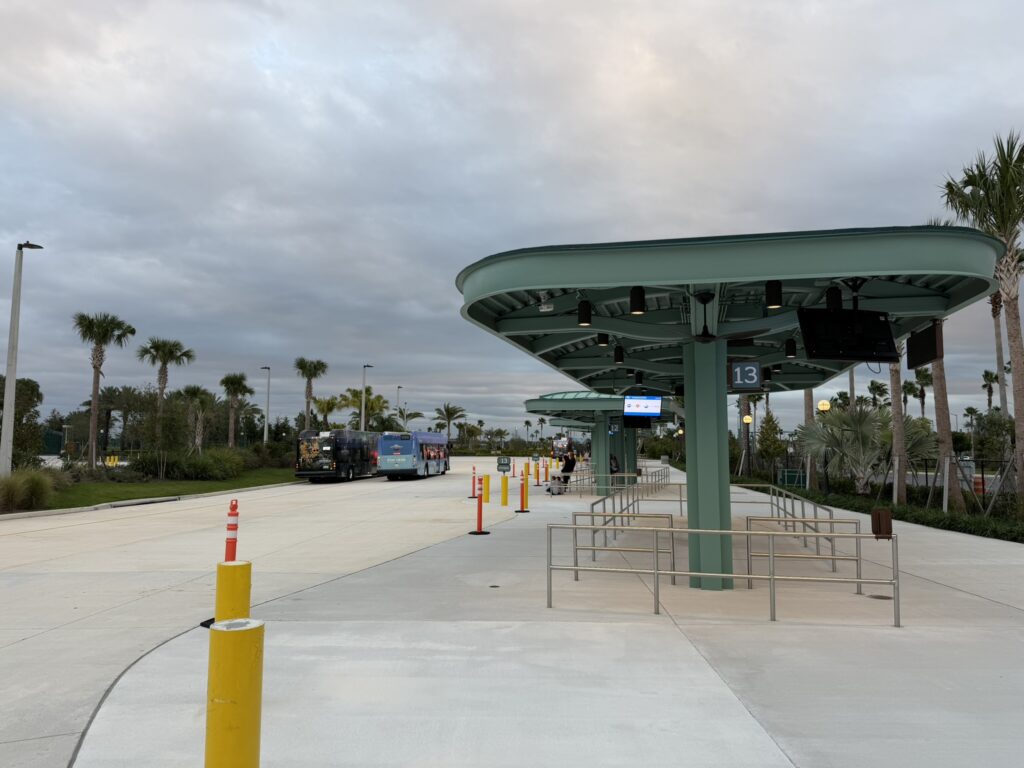 Once you’re on the bus, it should take about 15 minutes to get to Epic Universe. You will get off and go through a security line here.