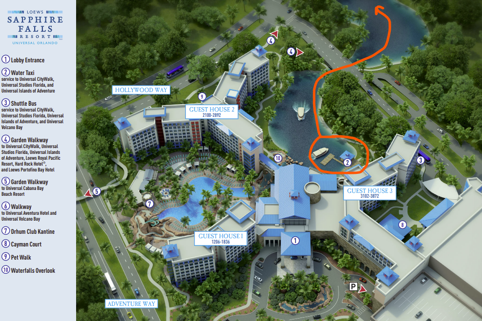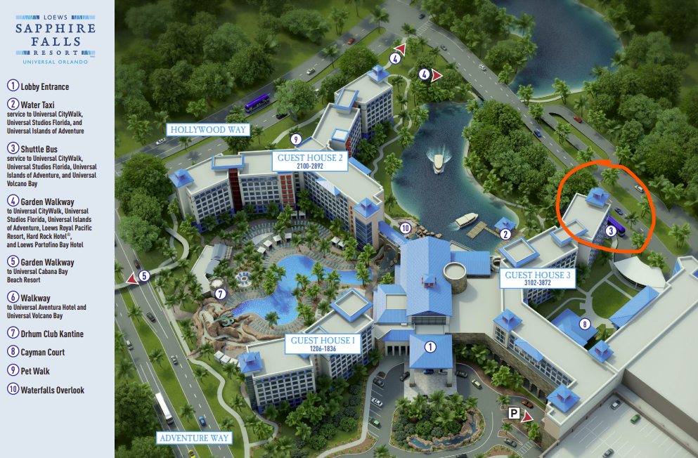 Universal also provides buses to get from Sapphire Falls to CityWalk, Universal Studios, and Islands of Adventure.