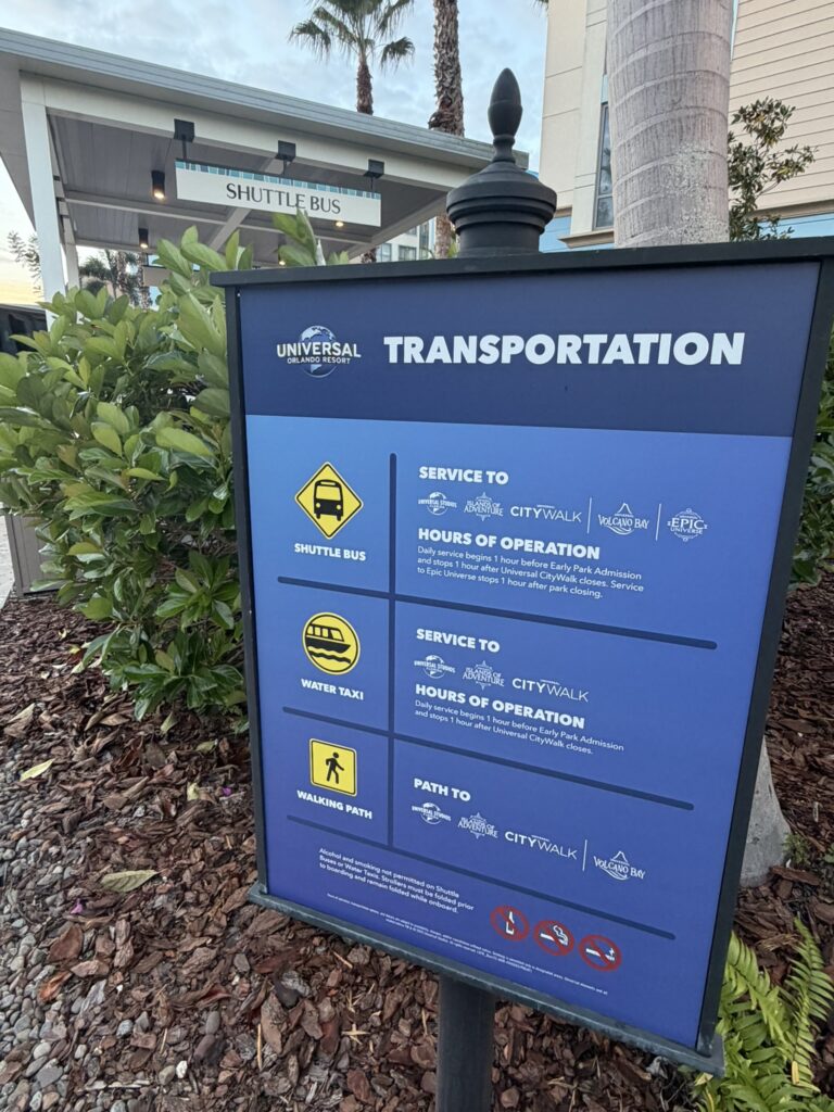 The main way to get to Epic from Sapphire Falls is to take the free buses that Universal provides. They start running about an hour before park opening (including Early Park Admission) and continue until around an hour after Epic closes.
