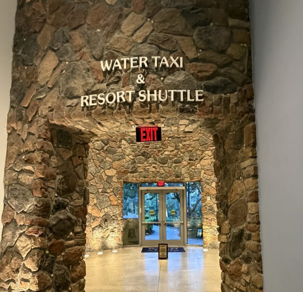 The water taxi boat dock is easy to find. You will walk out the back of the resort, and you should see it right on the water.