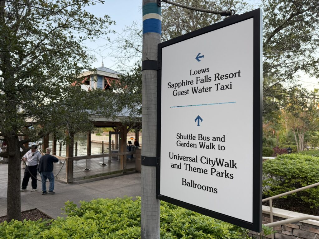 In my opinion, the best way to reach the CityWalk complex is by taking the FREE water taxis from Sapphire Falls. I think it’s normally the quickest way to get to CityWalk, Islands of Adventure, or Universal Studios.
