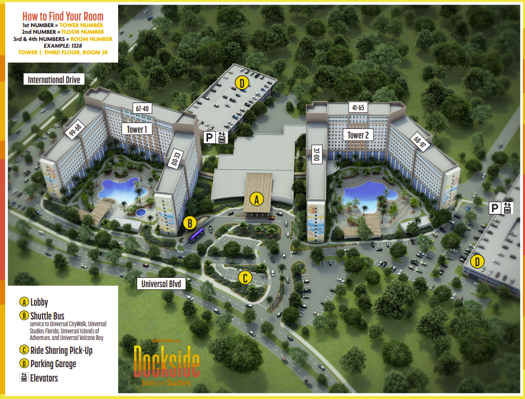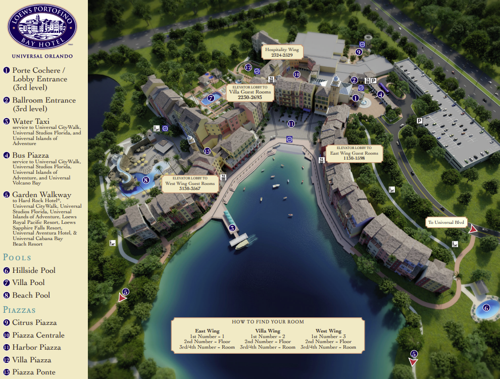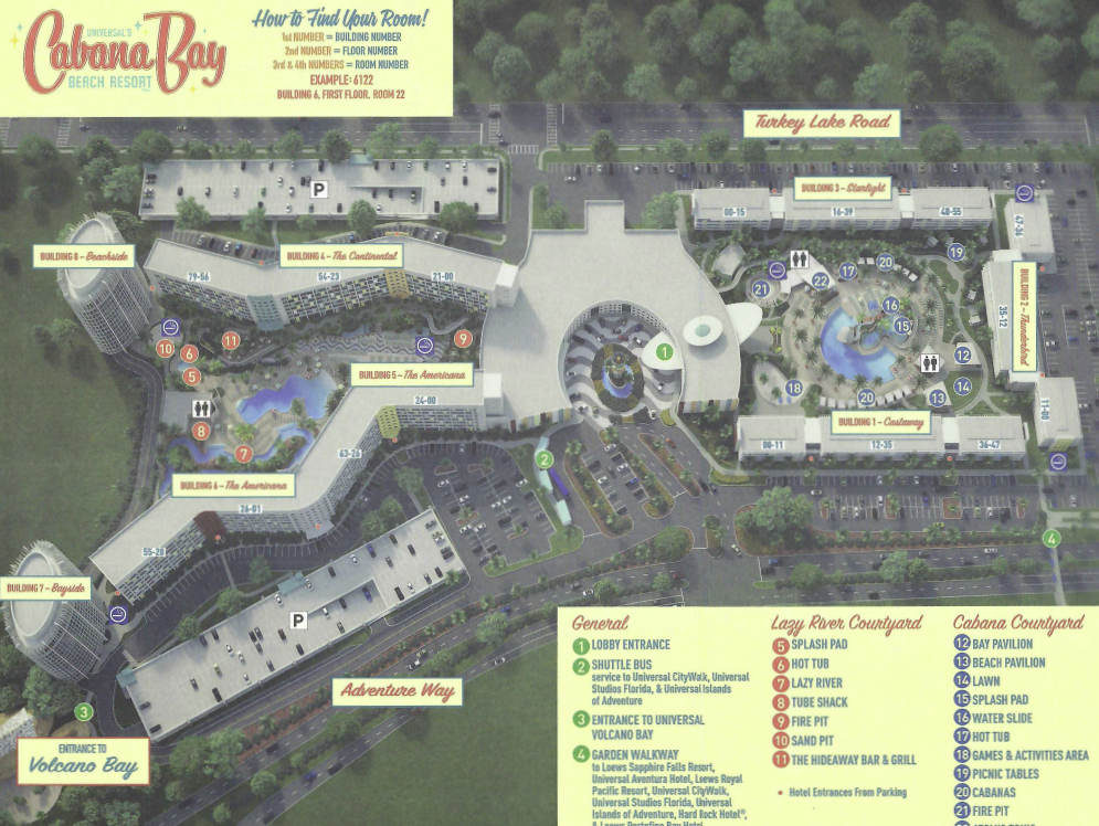 Resort maps come in handy before you even check in. They’re useful when deciding if you want to request a specific room location, especially if being close to certain amenities matters to you. I like seeing where the pool is located, along with park transportation (resort shuttles, water taxi, walking paths).