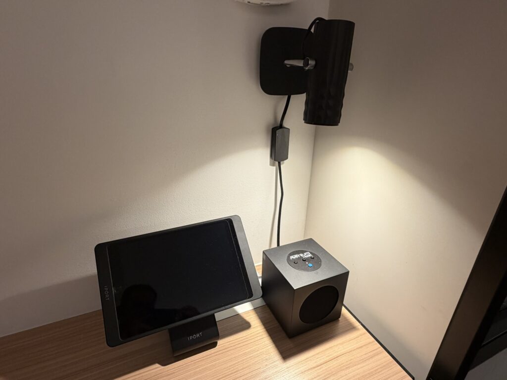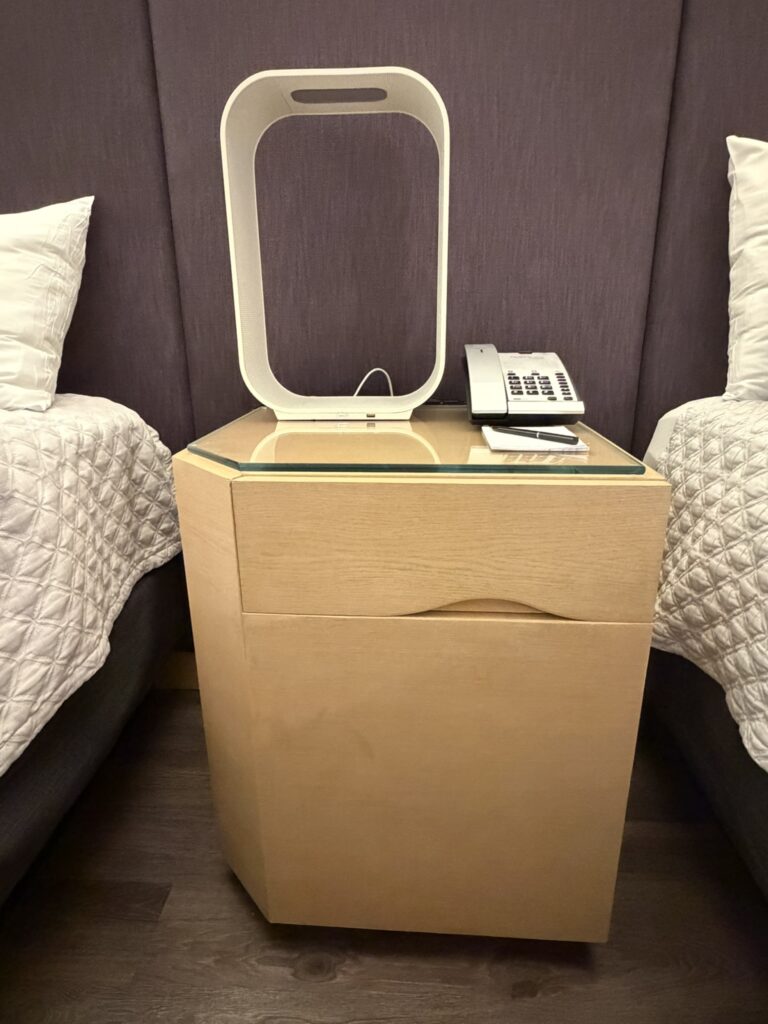 The tablet you see in the picture below is surprisingly important! It’s how you control the lights, including turning them on and off and adjusting brightness. You can also control the temperature, the television, as well as order room service, chat with the front desk, and request amenity deliveries from Relay the robot.